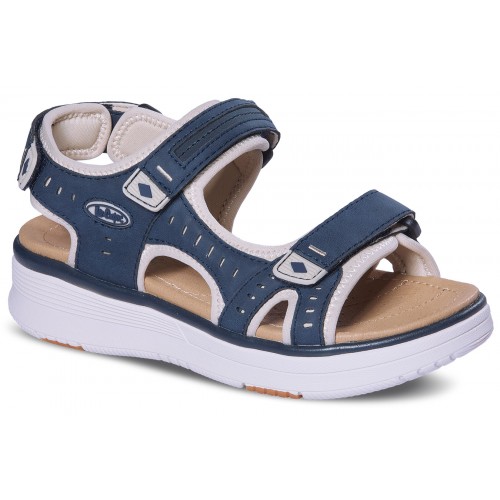 Wygodne sandały na grubszej podeszwie z regulowanym zapięciem na rzep.