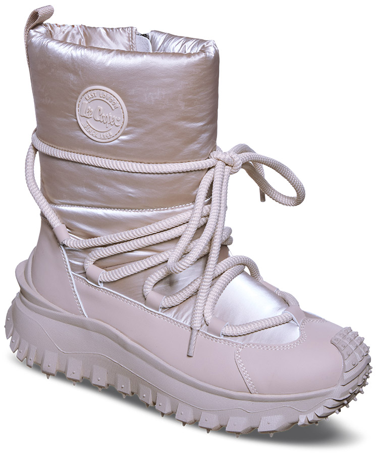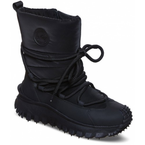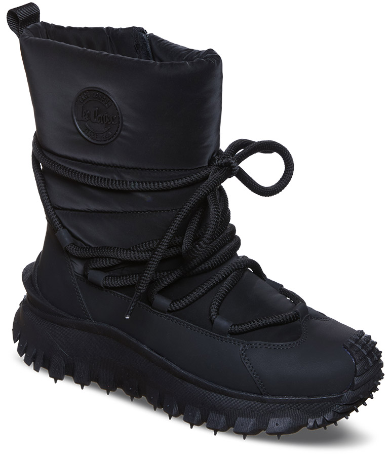 Damskie, sznurowane śniegowce wykonane z nylonu.