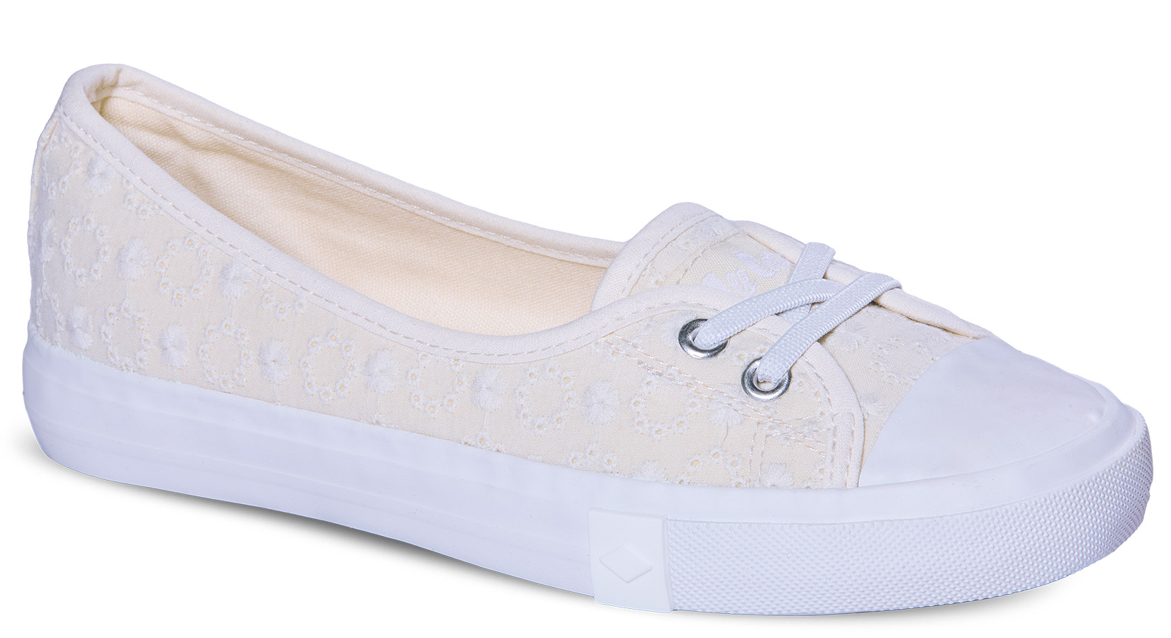 Wygodne połączenie trampek i czółenek wykonane z naturalnego materiału typu canvas.