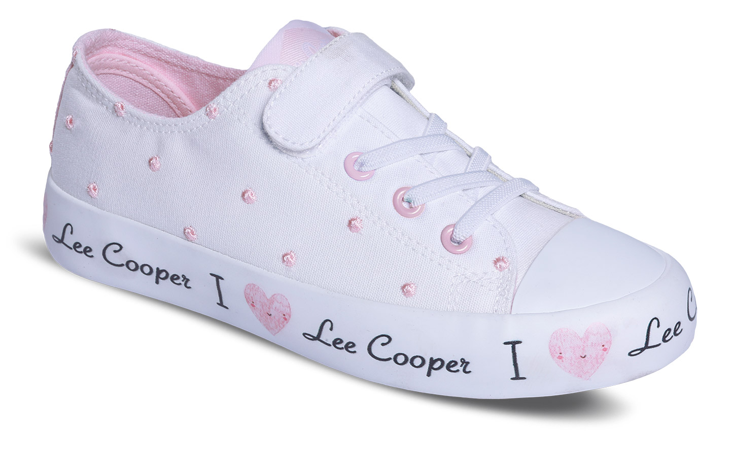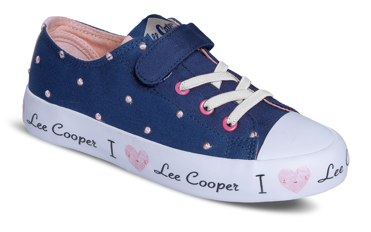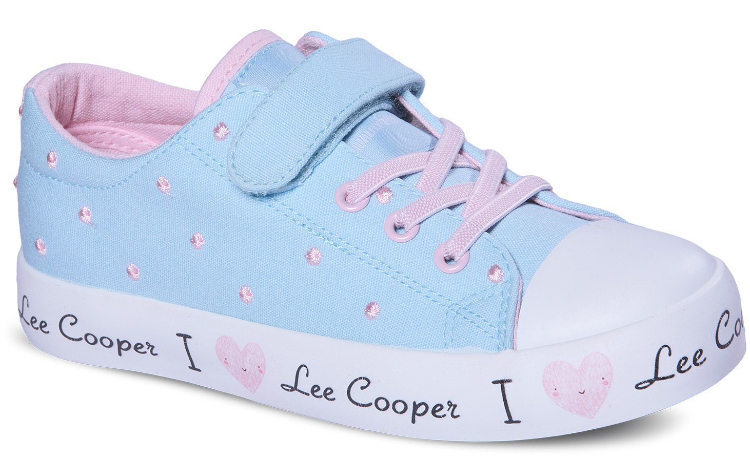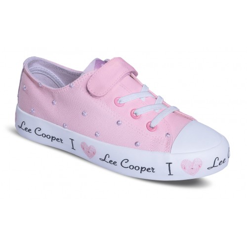 Wygodne trampki wykonane z naturalnego materiału typu canvas z elastyczną sznurówką oraz zapięciem na rzep.