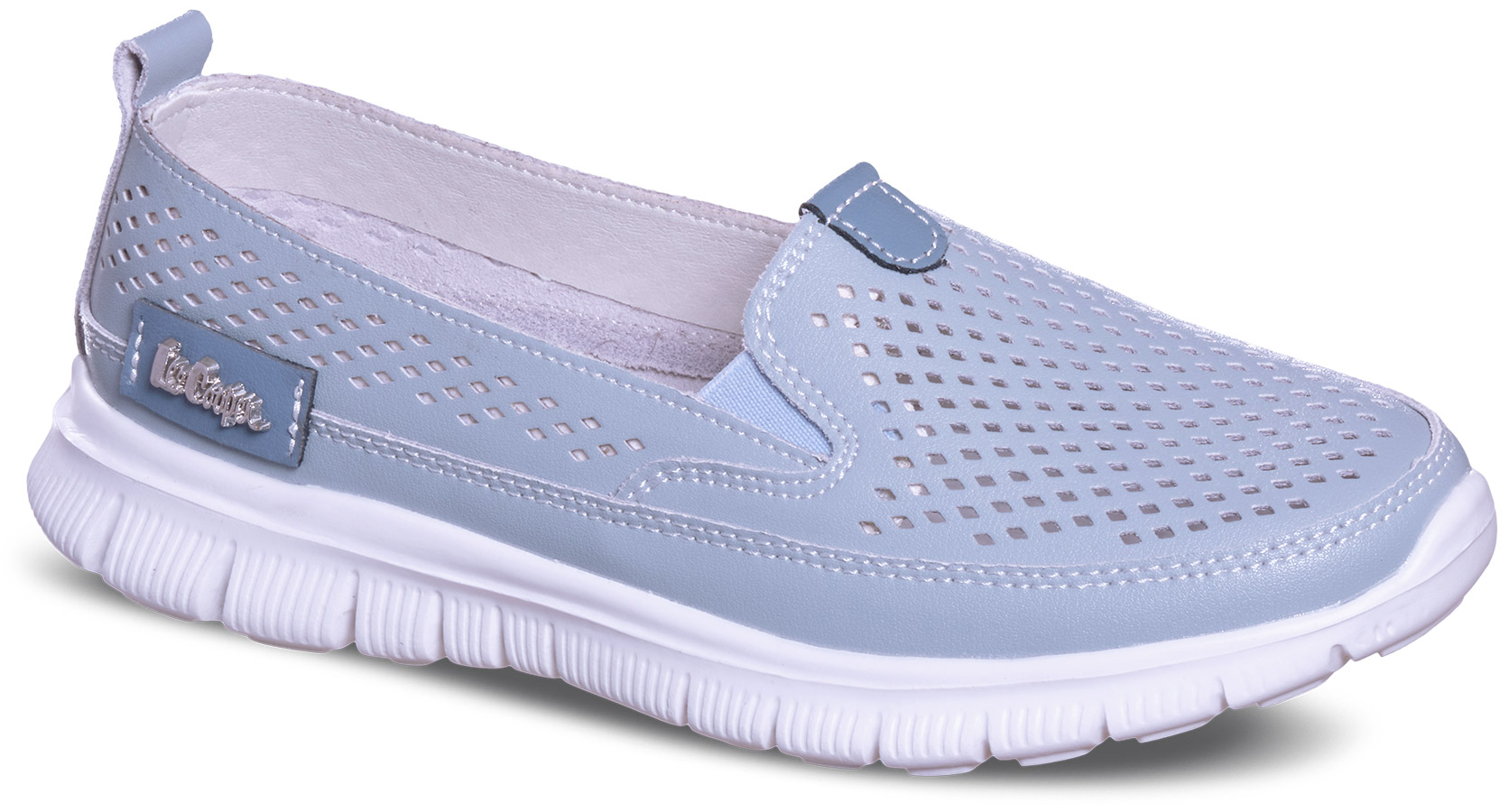 Wygodne, wsuwane obuwie wykonane ze skóry perforowanej.