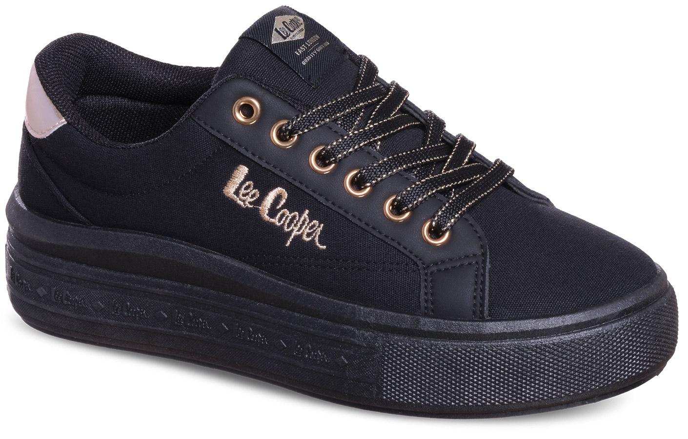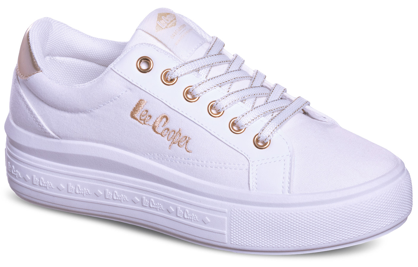 Damskie, niskie trampki na grubszej podeszwie wykonane z naturalnego materiału typu canvas.