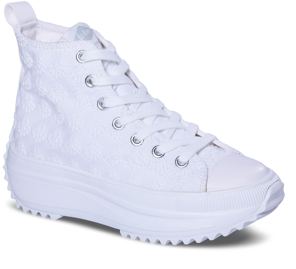 Modne, wysokie trampki wykonane z naturalnego materiału typu canvas.