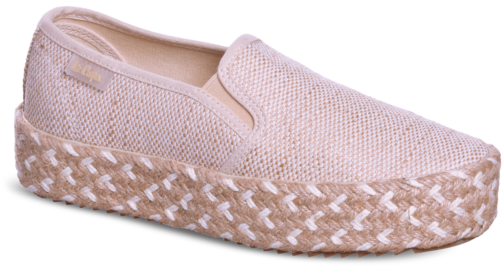 Materiałowe, wsuwane espadryle na grubszej podeszwie.