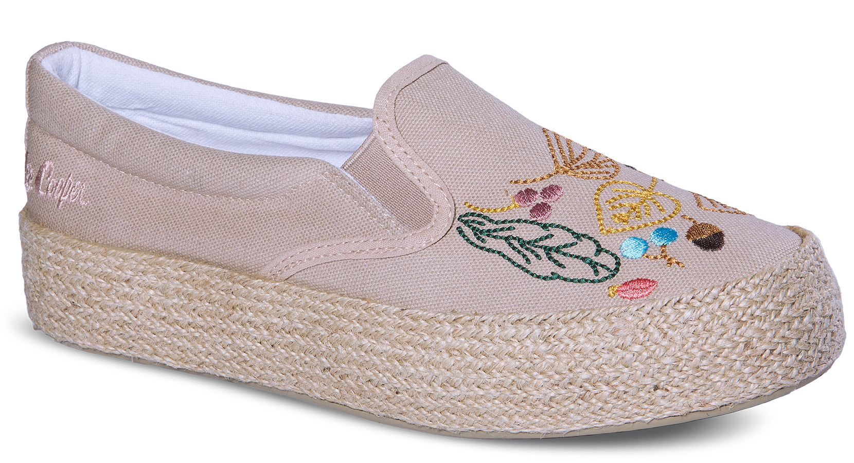 Wygodne, wsuwane espadryle wykonane z naturalnego materiału typu canvas.