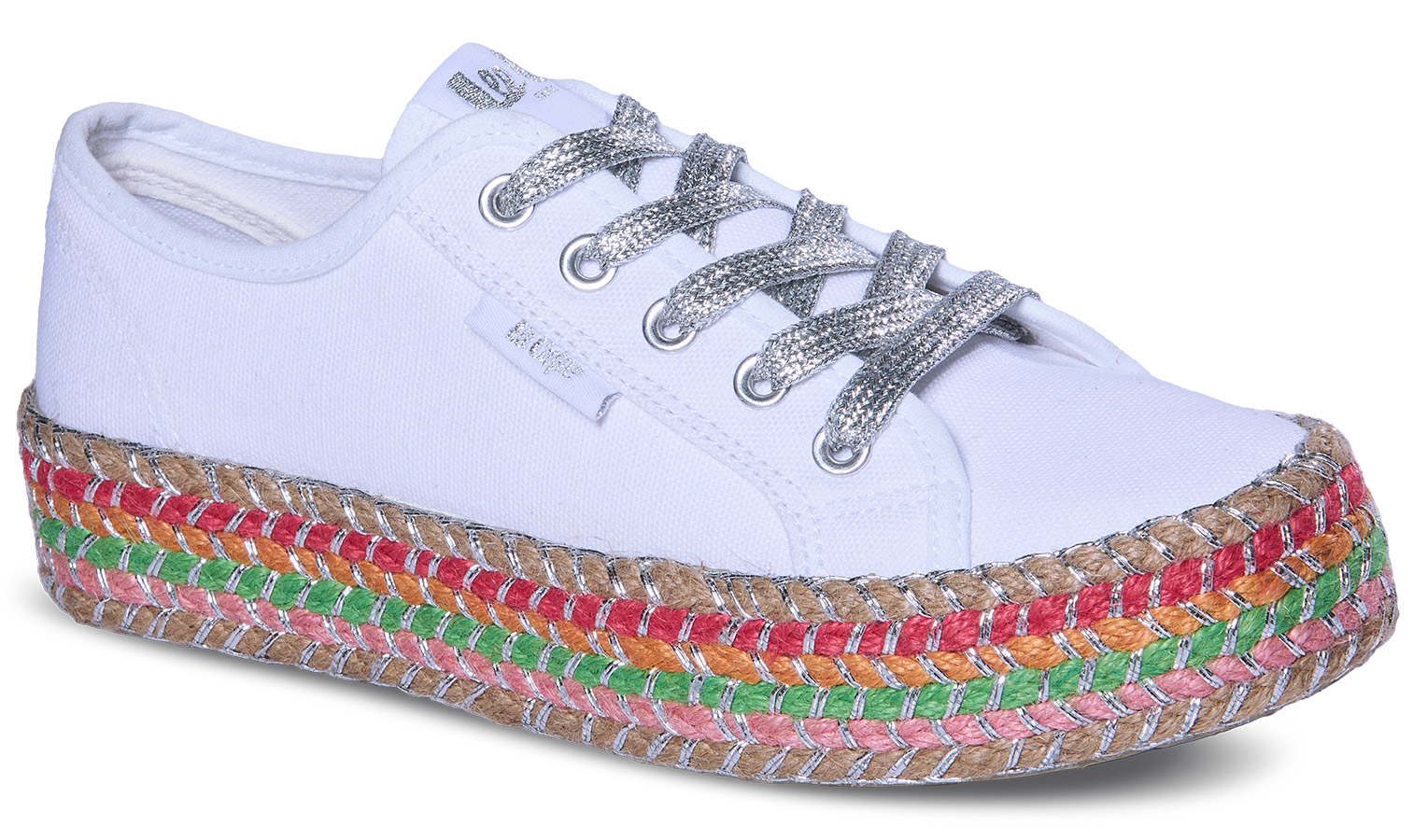 Damskie, niskie espadryle wykonane z naturalnego materiału typu canvas.